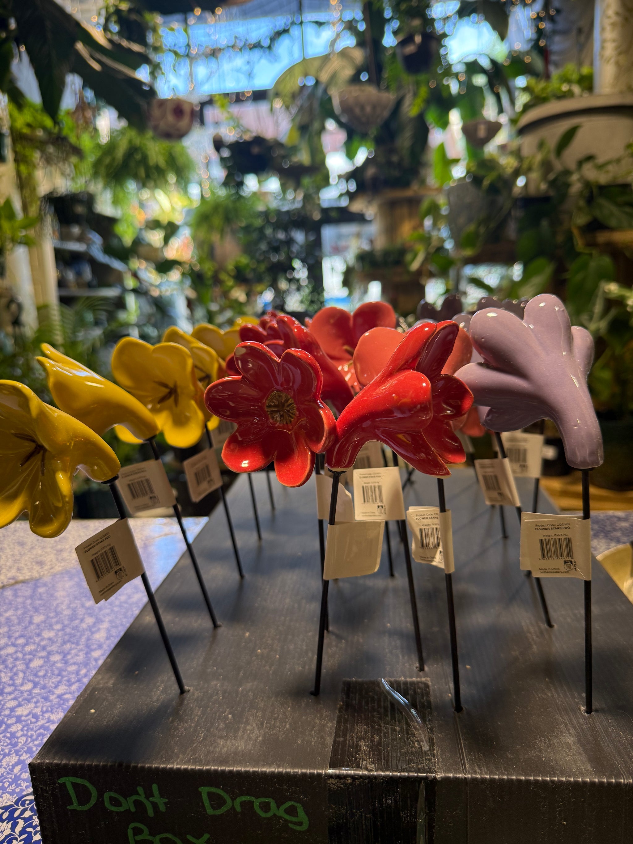 Ceramic flowers stakes for the garden, patio or your pots