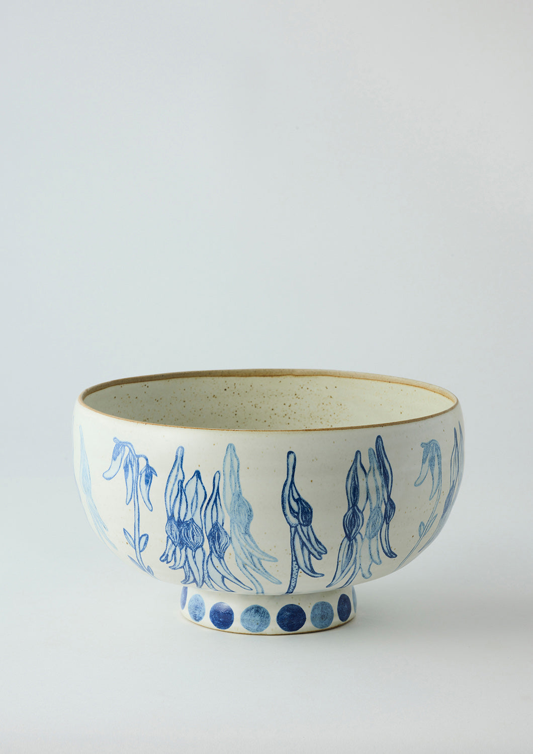 The unique imagery taken from a series of paper etchings have been carefully illustrated in-house by A&C. Exceptional details in this collection include raw clay rims that juxtapose the milky glaze, elevated foots on the bowls and smooth mug handles that are all decorated with a sprinkling of our signature dotty pattern.